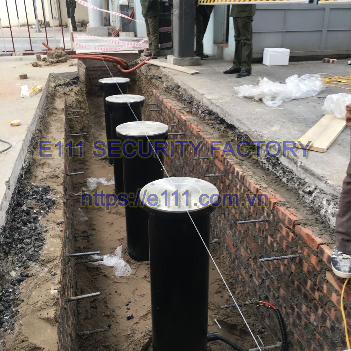 Hình ảnh chuẩn bị test cọc chống khủng bố trước khi chôn ngầm các thiết bị xuống lòng đường