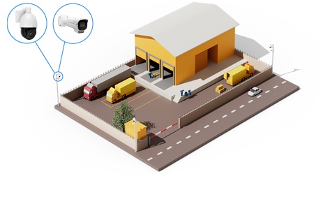 Dọc theo khu vực có hàng rào, việc lắp đặt camera AI có khả năng phân tích phát hiện xâm nhập cũng như báo động bằng âm thanh và ánh sáng sẽ tăng cường an ninh ở khu vực vòng ngoài. Đối với mô hình vòng ngoài nhỏ sẽ sử dụng các loại camera AI màu 24/7 (gồm camera PTZ, camera thân, camera dome), sử dụng thiết bị lưu trữ dạng NVR và phần mềm giám sát từ xa cài đặt trên thiết bị di động. Việc phát hiện và cảnh báo xâm nhập sớm bằng camera AI cho phép hệ thống tự động phản ứng với đối tượng xâm nhập, chẳng hạn như đưa ra cảnh báo tức thì và ngăn chặn những kẻ xâm nhập bằng các cảnh báo bằng âm thanh và ánh sáng. Khu vực này ta có thể sử dụng Thermal and Optical Bi-spectrum Network Speed Dome TB-TC40H-491VFPI của chúng tôi.