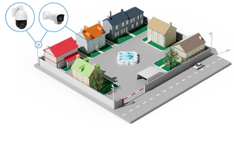 Tại các khu vực mở ngoài trời, giải pháp phát hiện kẻ đột nhập đã được đưa vào tất cả các loại camera của TBVision với khả năng phân tích thông minh ứng dụng công nghệ AI. Đối với mô hình vòng ngoài trung bình này, sử dụng loại camera AI màu 24/7 (gồm camera PTZ, camera thân, camera dome), sử dụng thiết bị lưu trữ dạng NVR, phần mềm giám sát từ xa cài đặt trên máy tính và thiết bị di động. Camera AI màu cho phạm vi giám sát và phát hiện tốt trong môi trường ánh sáng tôi, ngoài ra bổ sung thêm camera AI ảnh nhiệt cố định để cho phạm vi giám sát và phát hiện tầm xa tối ưu trong mọi điều kiện ánh sáng hoặc tối hoàn toàn. Camera PTZ IP Starlight IR 2MP 42x TB-I2323VPF42 ở vòng ngoài có thể giám sát và xác định thêm những đối tượng xâm nhập bằng cách phóng to tập trung vào đối tượng.