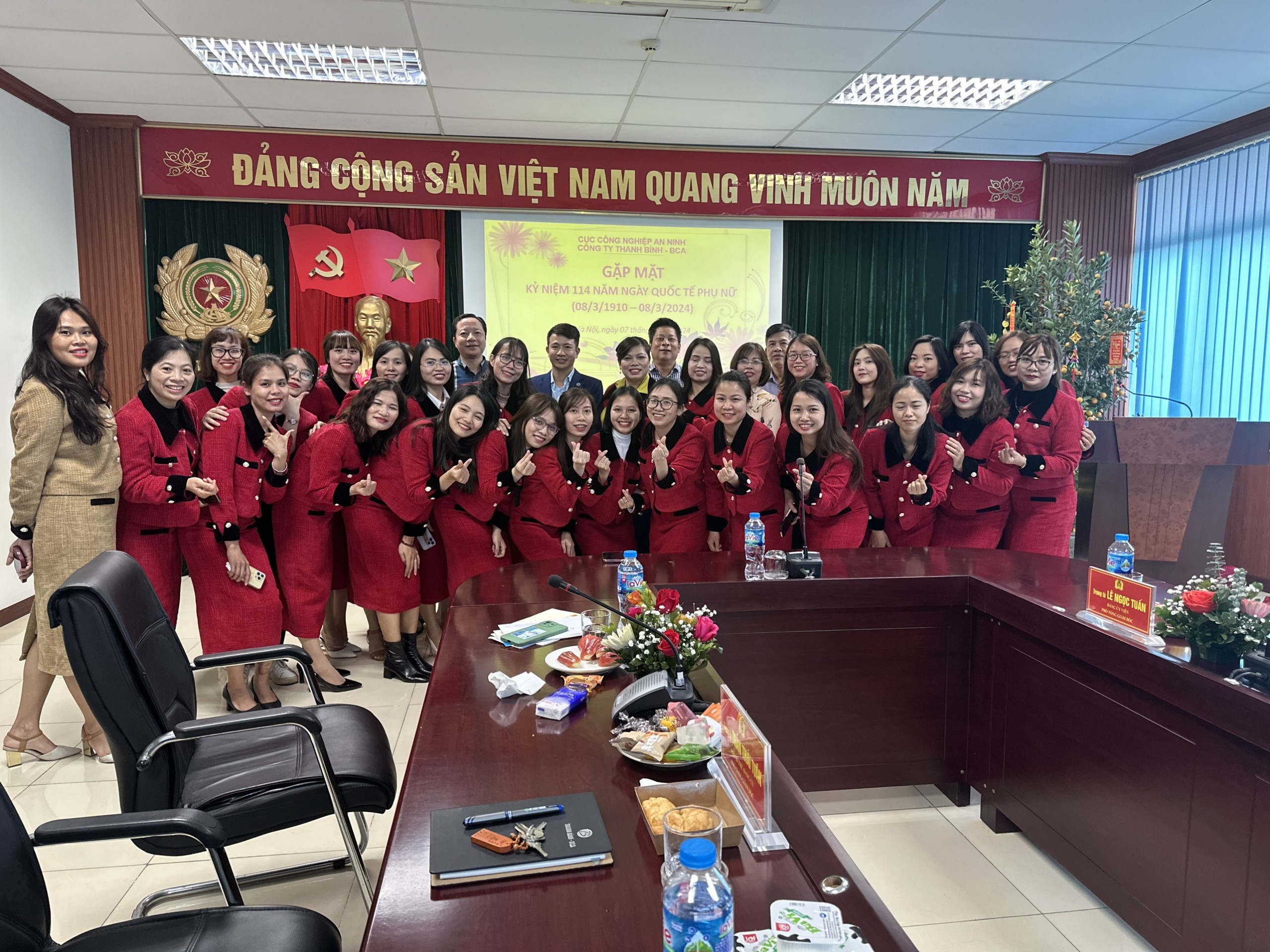 Ngày 07/03/2024, Đảng ủy, Ban Lãnh đạo Công ty Thanh Bình- BCA đã tổ chức buổi gặp mặt thân mật chị em thuộc Hội phụ nữ Công ty nhân dịp Kỉ niệm 8/3/2024. Toàn thể chị em Công ty đã được nhận được quà, hoa từ Đảng ủy, Ban Lãnh đạo Công ty và Lãnh đạo của các đơn vị thành viên. Một số hình ảnh trong buổi gặp mặt.