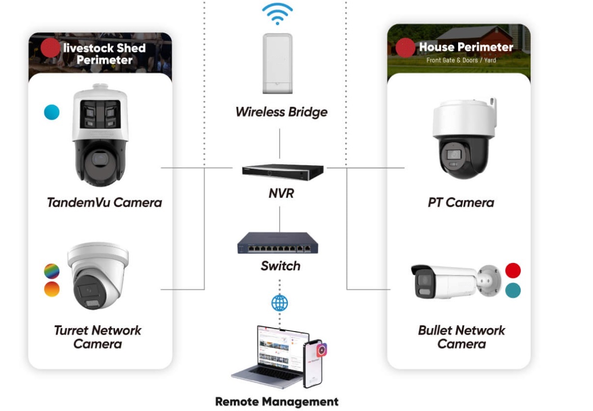 Các giải pháp của Nhà máy E111 dành cho trang trại đảm bảo an toàn an ninh và giám sát tài sản chăn nuôi, ngay cả trong môi trường ngoài lưới điện. Chúng cung cấp cảnh báo xâm nhập theo thời gian thực, tăng cường an ninh và khả năng hiển thị cho chủ trang trại.